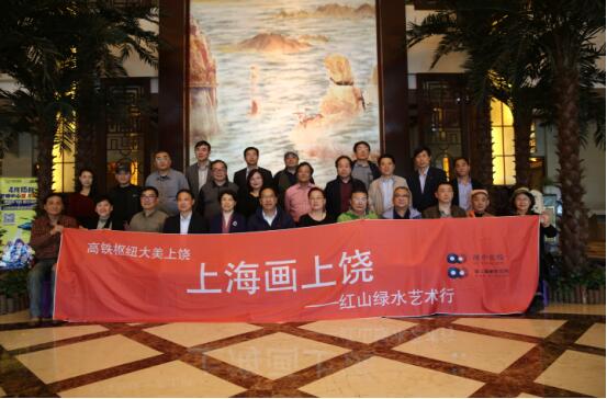 施平先生得知我来上饶挂职后,主动提出为上饶做点力所能及的事情。去年底,在他第一次来上饶与我见面后,通过考察和了解上饶的地理区位、自然资源和文化习俗后,表示想策划一期上饶的专题艺术展。后来他还曾多次当天往返于上海上饶之间,与上饶的宣传部门联络和谋划。随后,上饶市委宣传部和澳中在线、上海文化创意产业资源联盟联合举办了以“高铁枢纽、大美上饶”为主题的、由著名艺术家陈佩秋先生题名的“上海画上饶——‘红’山绿水艺术行”(一城一市艺术先行)活动。在今年3 月中旬和4 月中旬,前后两批沪上知名艺术家来到上饶采风,成员包括著名影视演员牛犇,著名艺术家方世聪、车鹏飞、乐震文、丁申阳、刘蟾、周根宝、刘汇茗等,以及著名作家记者成莫愁、《人民日报》记者赵毅等。活动还得到了胡雅龙、陈轩等上海对外协作界资深人士的大力支持和精心指导。结束采风后,施平先生又忙着将艺术成果进行拍摄、装裱、编辑、宣传和出书等大量的后序工作。