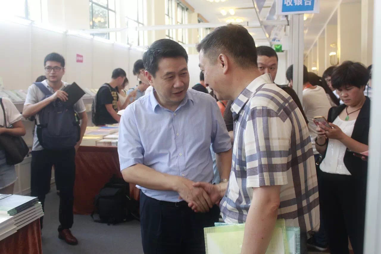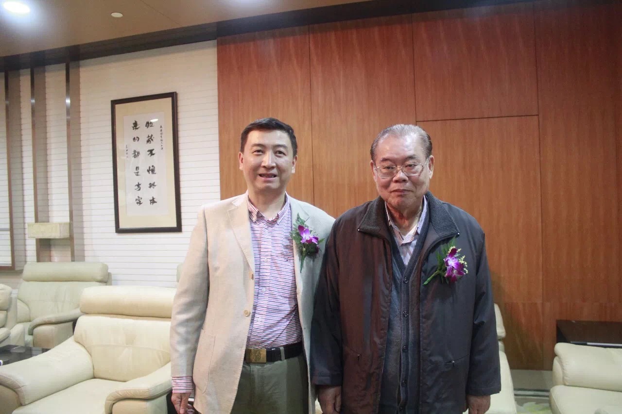 上饶市委宣传部长丁晓胜与澳中在线董事长、著名策展人施平亲切握手