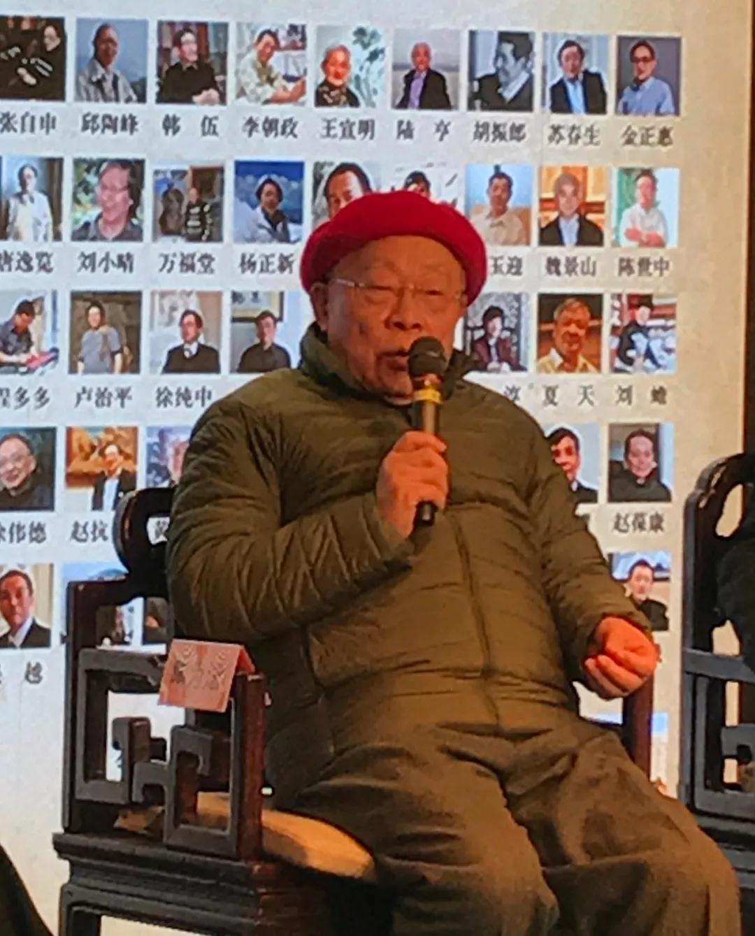 听了陆亨先生发言,陶为浤先生以软糯的吴语缓缓道来:“在我很小的时候,我的父亲曾经收过两三个书画学徒,然而他没有收我为徒。我曾三番五次恳请父亲教我,他便与我约法三章,如果学习书画的话必须听从他的教导。每次父亲教我画时,我都临摹十遍以上,不然他就不再教我了。父亲最先教我画梅花,梅花画了近三年。起先不理解,后来才知道父亲的良苦用心。只要学会了梅花,桃花、梨花也就自然学会了,原来画花都有相通之处。”