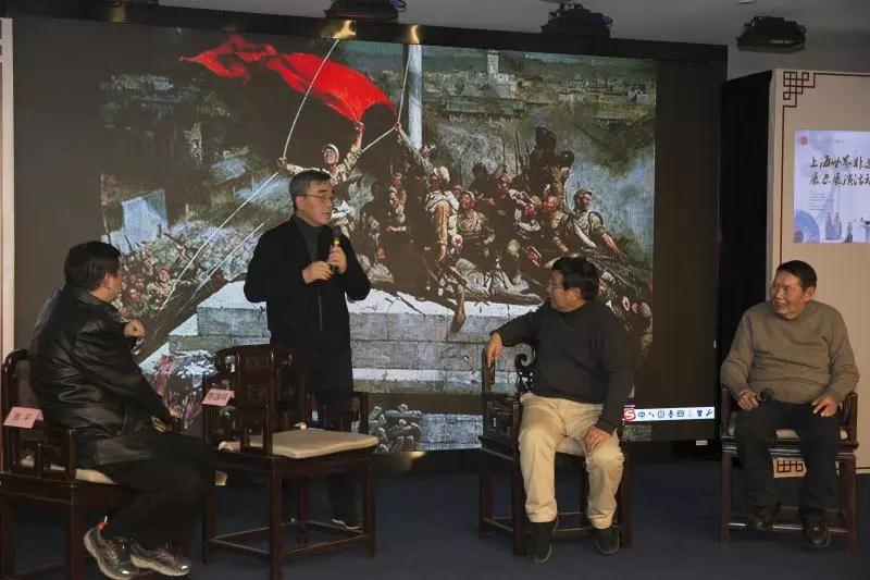 台上台下,融成一片,有提问,有回答,还有引经据典,考证大世界的创始人,上海交通大学的教授与网名江姐的观众等人抢着向台上画家提问,研讨会成为思想上的碰撞与交汇,境界的拓宽与升华。
