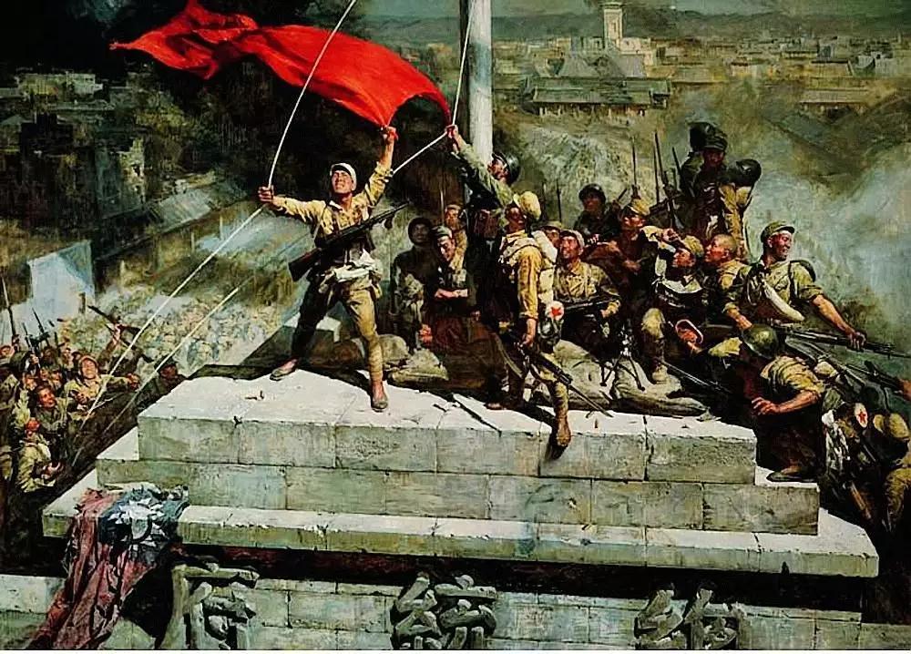 这幅油画是著名画家陈逸飞、魏景山于1977年合作创作的革命油画。根据陈燮君回忆,当时陈逸飞为创作这幅画,还特地跑去外滩去观察石头的质感,然后回家画石头的素描。