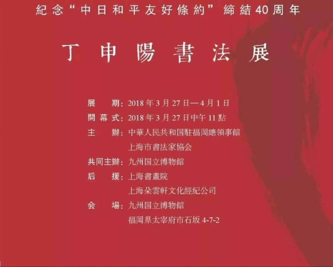 为纪念“中日和平友好条约”缔结40周年——丁申阳书法展今日上午十一点在日本九州国立博物馆隆重开幕: