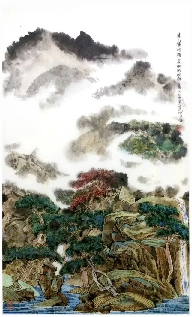 在东望的过程中,他既有其父“程家样”的影响痕迹,如那种“欲说还休”的用笔, “藕断丝连”的线条。但又不拘泥于父亲开创的“程家样”。而是更多地继承了“程家精神”和“程家胸襟”。所谓“程家精神”就是一种在艰苦打进传统以后又勇敢走出传统的敢于创造自立面貌的创新精神。程先生其实是中国五、六十年代最具创新精神和最有自己个性面目的国画家。多多在艺术精神上和程十发先生是一脉相传的。多多在色彩的运用上大胆泼辣,敢于用极其响亮的色彩来提起作品精神。他的山水,尤其象《和谐》极具气势,震撼人心。他东寻写意西找写真,于是我们读到了他有“真””意”的中国画。而所谓的”程家胸襟”,在我看来就是那种对我们生活的世界,充满了爱的感情,对世界提供给我们的一切都充满了一种急欲表现的激情和欲望。并且在表现和创造过程中感受到艺术无所不能无所不在的喜悦。中国画是具有严格分类的绘画艺术。但在程十发先生那儿,山水、人物、花草、翎毛、走兽,几乎没有不入他的画的,而且是无一不精的。世界的艺术分类,在程十发先生那儿是没有界限的,是浑然一体的。现在,它们在多多的笔下也是那么天然的一个整体世界。多多感动于鲜花的娇艳,鸟雀的呜啾,苍山如海的磅礴气势,云霞的无穷变幻,还有无数在我们身边走动的人物。由他(它)们构成了一个艺术世界。