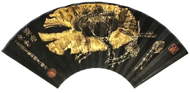 金荷花扇面