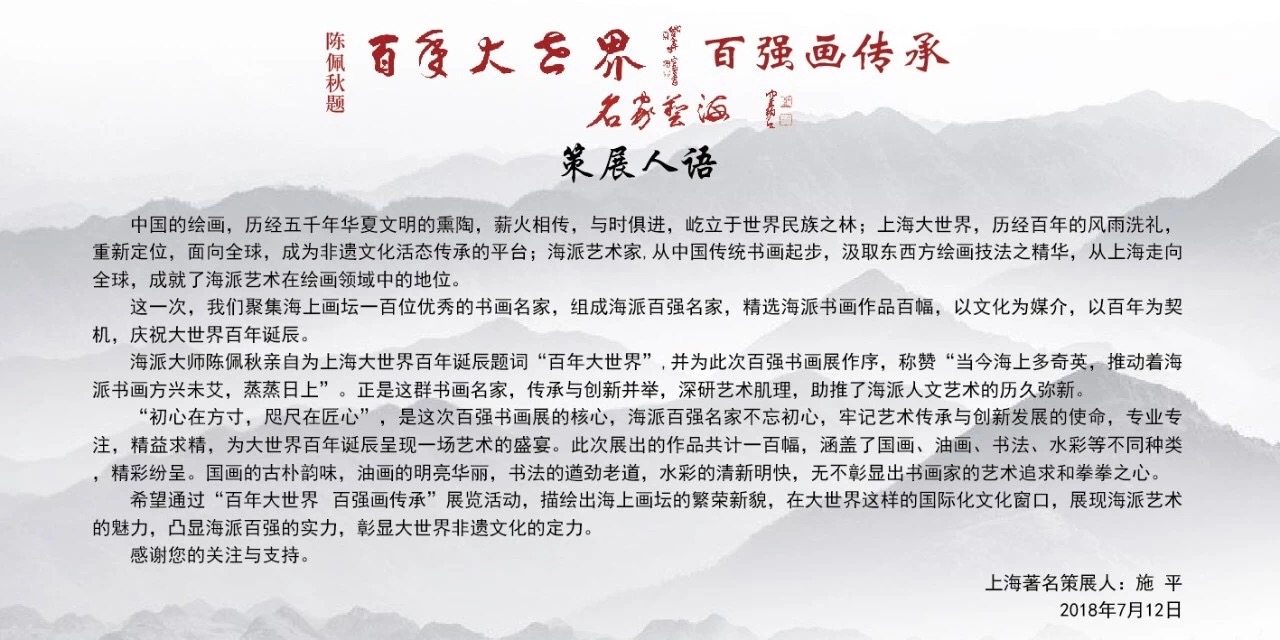 “百年大世界 百强画传承”——海派百强名家携百余幅书画精品庆祝百年大世界