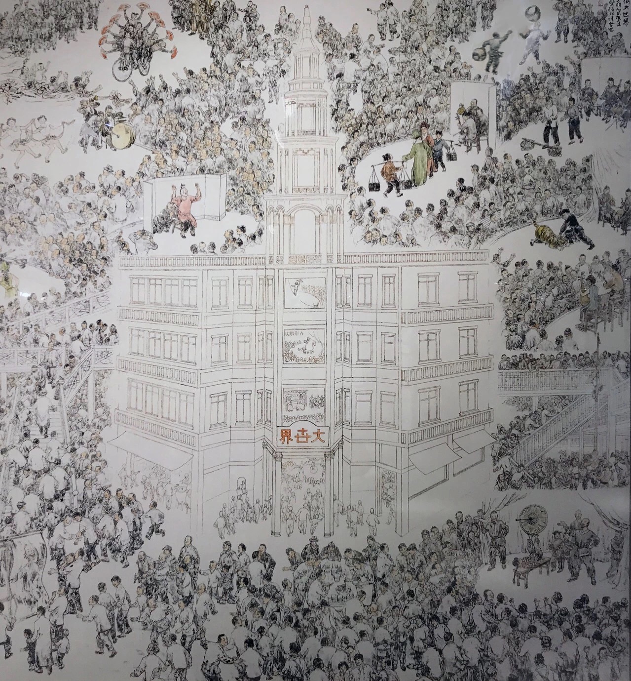 海派百强名家汪观清创作《上海大世界》,通过大世界内外的景观,人山人海,反映出大世界的人头济济,热闹非凡!几百个人物各展其态,可见画作的功力不凡和功夫之深,令人叹为观止,值得一看!