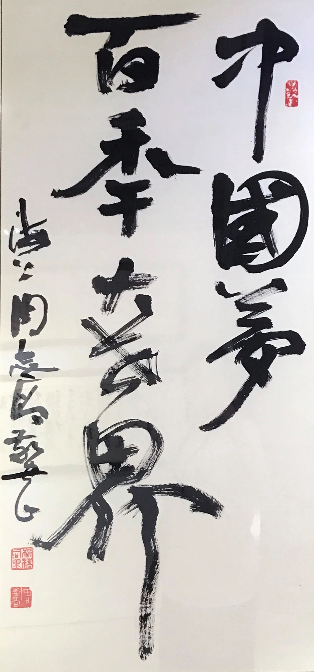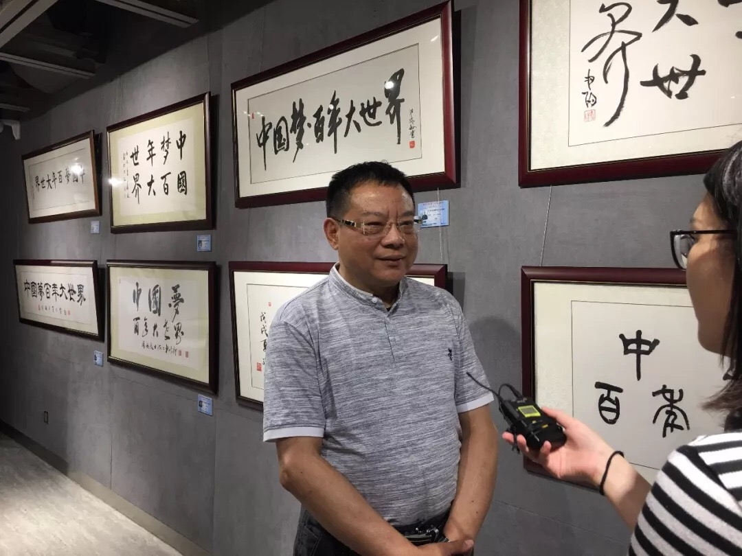 2018年,是中国改革开放的四十周年,为践行习总书记倡导的“实现中华民族的伟大复兴,就是中华民族近年来最大的梦想”,将“中国梦”融入此次展览中,著名策展人施平先生特邀海派百强名家汪观清、韩伍、方世聪、邱瑞敏、周志高、俞晓夫、车鹏飞、陈逸鸣、魏景山、吴超、王大宙、乐震文、丁申阳13人书写“中国梦·百年大世界”书法作品,作为大世界百年的献礼,此举既呼应大世界百年主题,也成为此次展览的亮点。