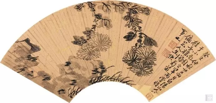 明 陈淳(1483~1544)《菊石图》扇面 水墨泥金 19.5×52厘米
