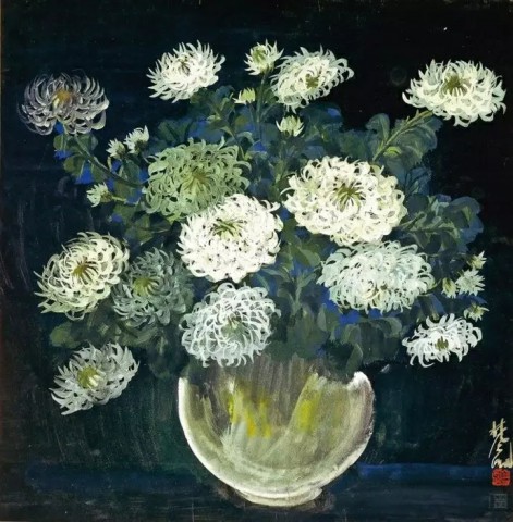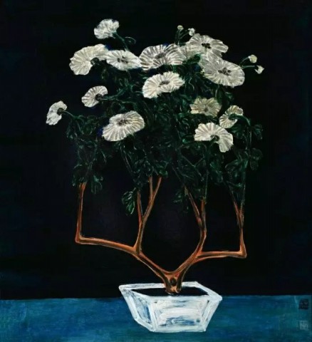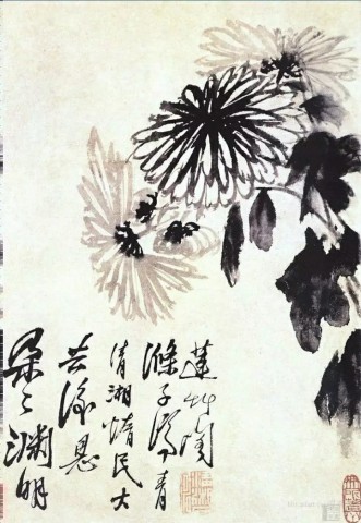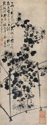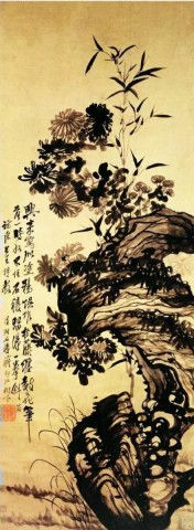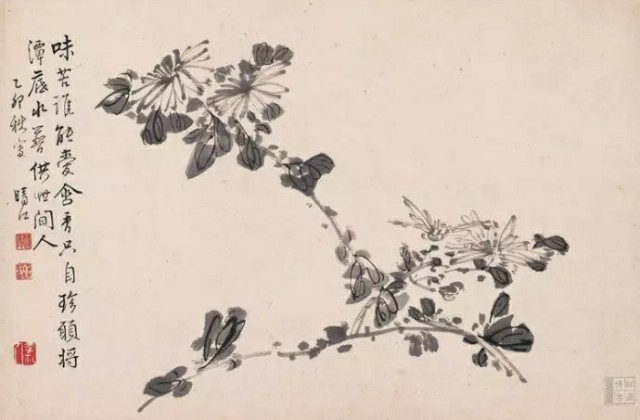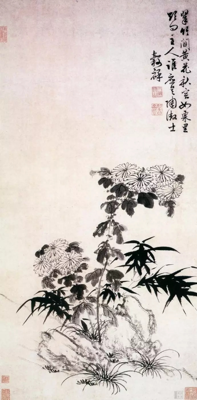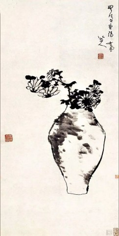 清 朱耷(1626~705)《瓶菊图》水墨纸本 51×28厘米 08年嘉德3136万元成交