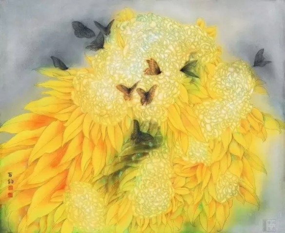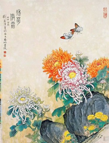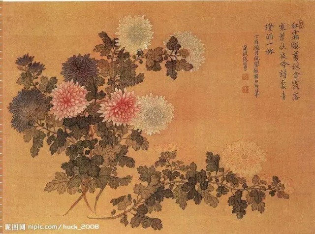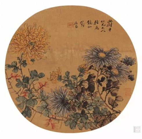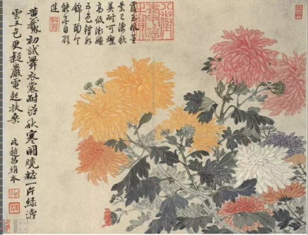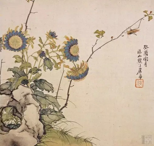 清 恽寿平(1633~1690)《五色菊花图》绢本设色 27×35.2厘米故宫博物院藏