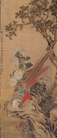 清 沈铨(1682~1762)《锦鸡菊石图》