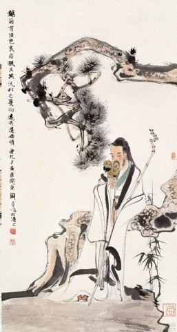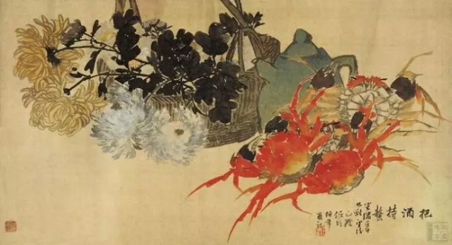 清 任伯年(1840~1896)《把酒持螯图》绢本设色 39.5×72.3厘米 天津艺术博物馆藏