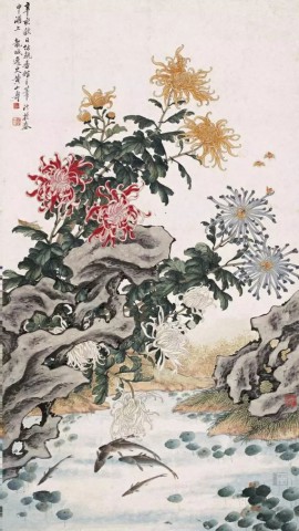 黄山寿《菊石游鱼图》