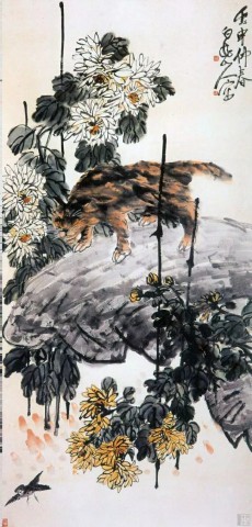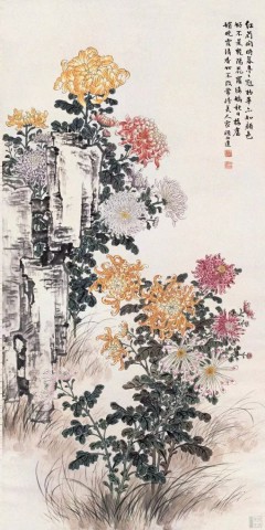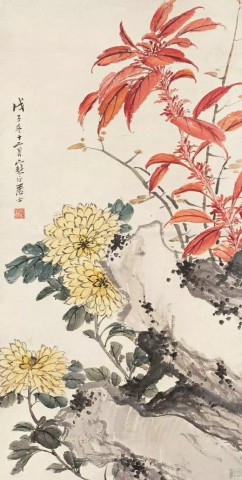 陈师曾(1876~1923)《秋花图》轴 纸本设色 177.8×89.8厘米 故宫博物馆藏