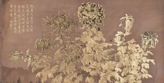 清 陈洪绶(1598~1652)《玩菊图》(局部)纸本设色台北故宫博物院藏