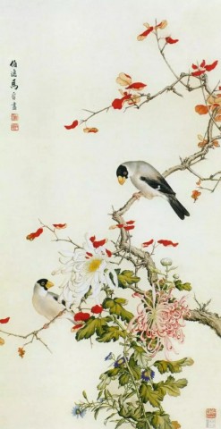 邹传安(1940~)《花小鸟》