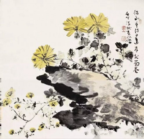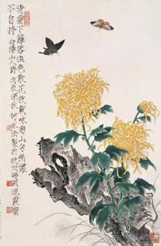 吴待秋(1878~1949)《菊石图》