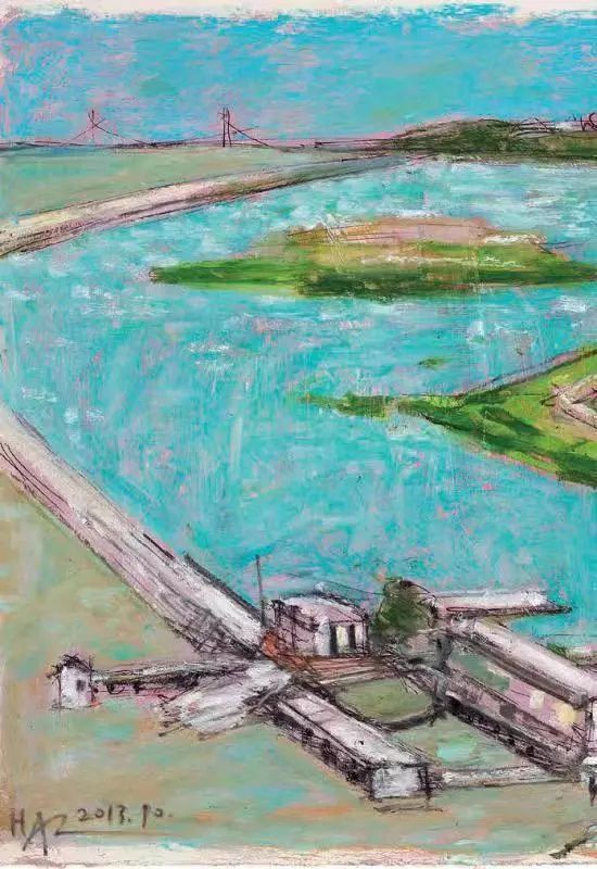 交谈之间,黄阿忠几次谈到徐霞客,流露出向往。他自己也是个好旅历的人,最近刚去过地中海和摩洛哥。旅途所见所闻,于文字方面倚马可待,于绘画也能一挥而就。有些地方,在别人眼中平淡无奇,在他却可以入画入诗。他说,美的分类是游动的,审美能力达到哪个程度决定你发现美的程度,而这一切最终诉诸到对物象的取舍。