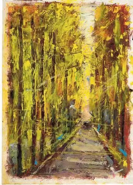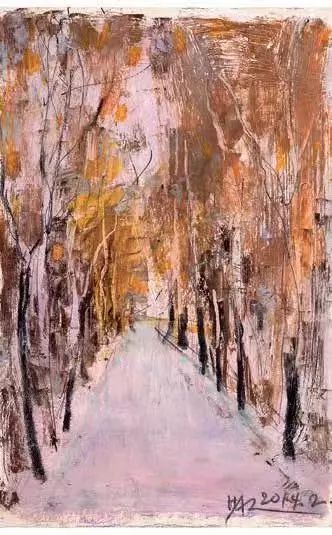 这种用色趣味在诗歌写作中反映出来,就变成对纵深感的追求。“一条碎石路,掰开沙地,通向三毛的文字”,“星星都相互照耀,千百年的历史文化,都在岁月长河中”,他从有限的具象的此岸“掰开”了一条诗画交响互文的道路,连接无限的,非具象的彼岸。在彼岸,他的灵魂和历史、文化、宇宙,以及美的本体,一起在理性的星空下散步。