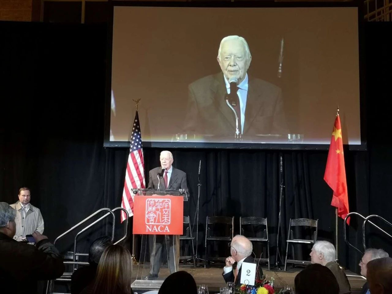 当地时间18日上午,美国前总统吉米·卡特出席了研讨会并发表演讲。中国驻美国大使崔天凯、中国人民对外友好协会会长李小林出席当天会议。