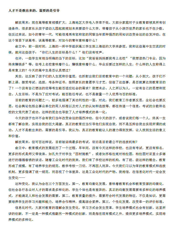 解放日报|俞立中:多拥有一种选择,就能多释放一份潜力