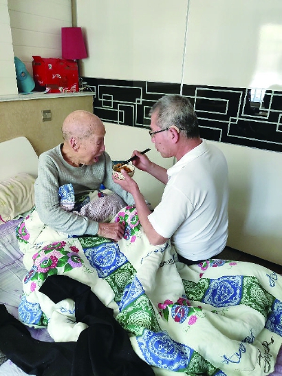 王老伯年老多病,每次去医院看病,都是施永新和妻子推轮椅或踩黄鱼车,将他送到医院,配药、喂药、陪夜……
