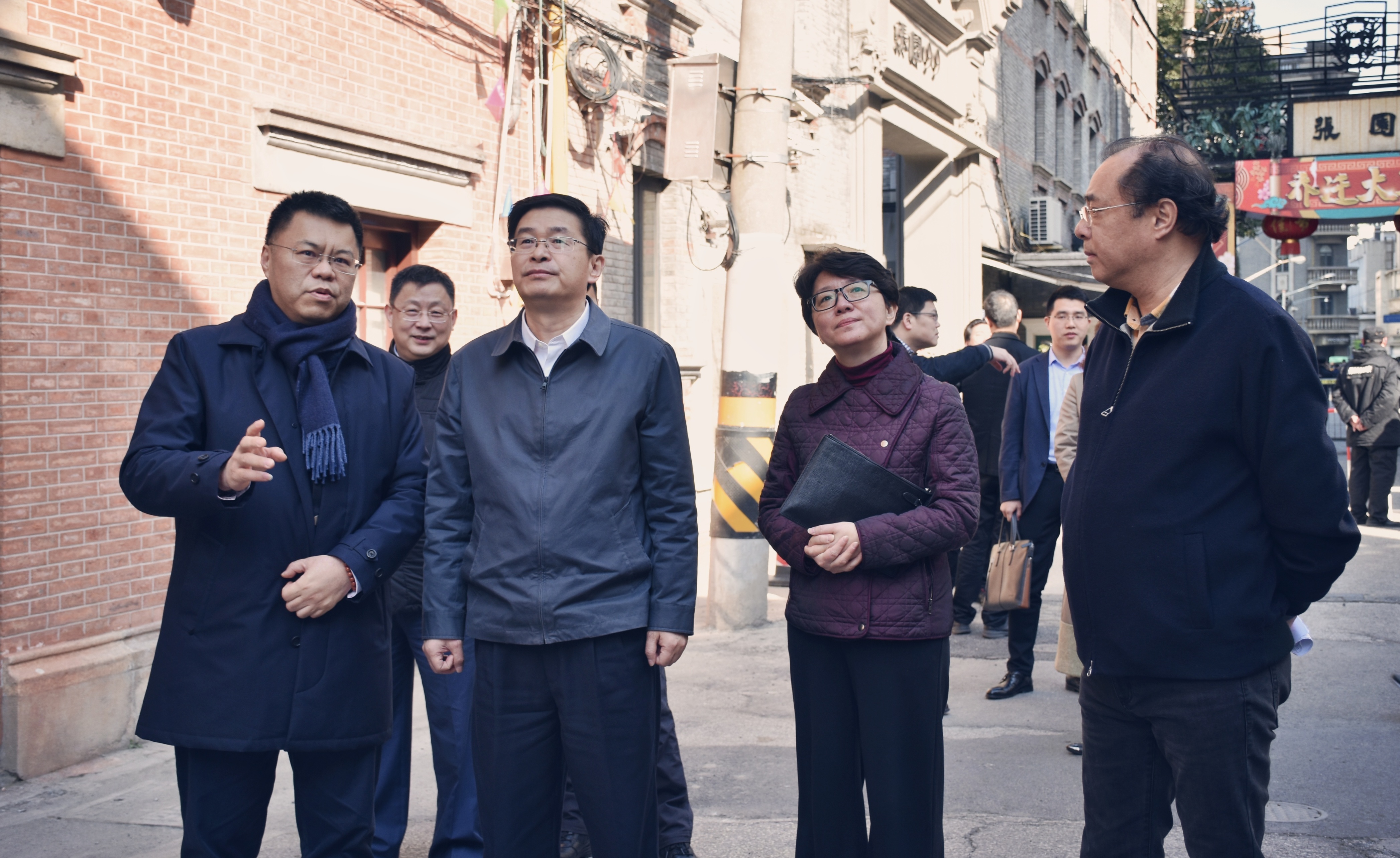 静安区委书记于勇在张园前左一时筠仑、前右一周伟良、前右二周惠珍