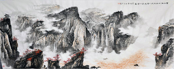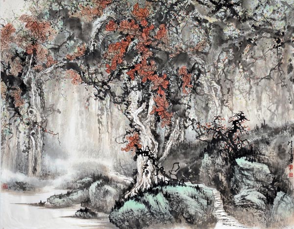 郭福深的山水作品厚重,气势磅礴,墨色苍茫,构图险奇,传统功力深厚。